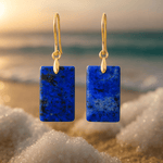 Objevte srdce Santorini s náušnicemi Almirea, inspirovanými hlubokými odstíny moře při západu slunce. Živé barvy a hypnotická kobaltově modrá mlha obdélníkových kamenů přinášejí klid řeckého večera přímo k vám.
