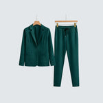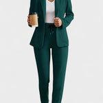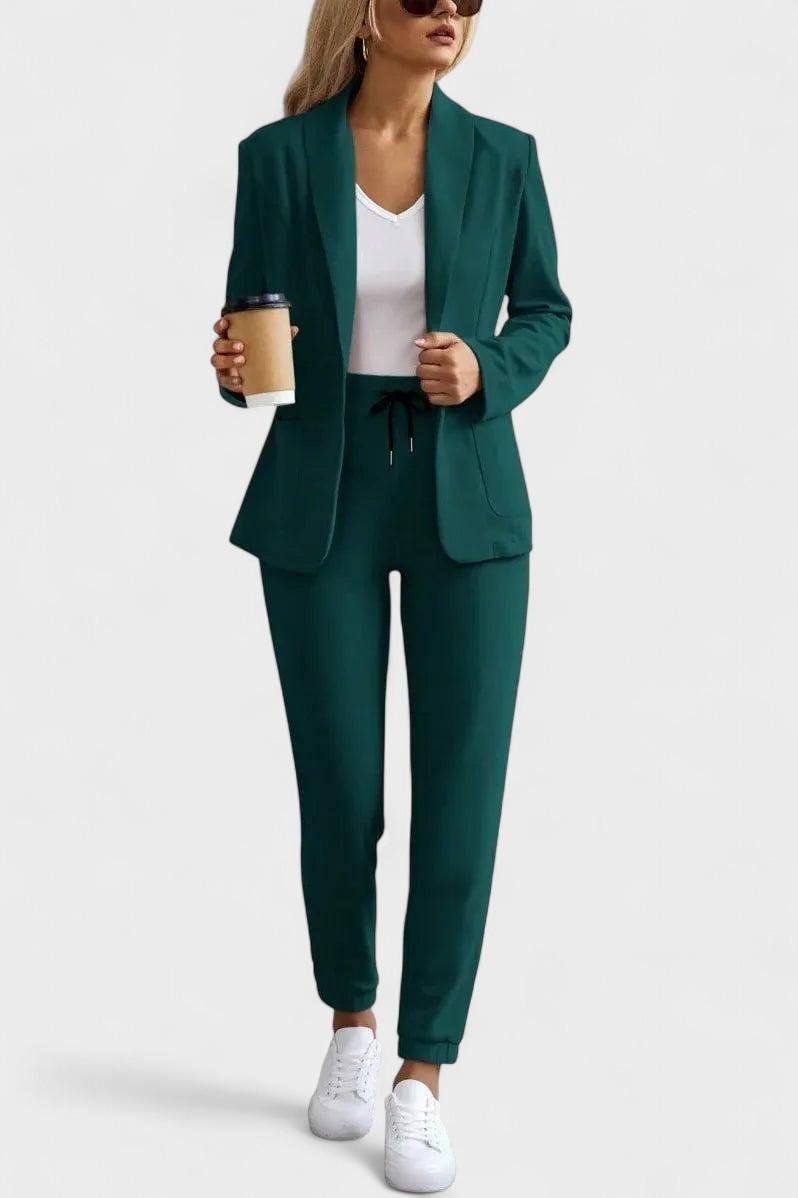 Noa™ set přináší dokonalou rovnováhu mezi ležérním pohodlím a upraveným stylem. Měkký blejzr s šálovým límcem a kalhoty se šňůrkovým pasem vytvářejí moderní siluetu, která je ideální pro pracovní dny i večerní setkání.