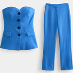 Paesha™ set přináší čistý design a pohodlí v dokonalé rovnováze. Bezrukávový top a volné kalhoty vytvářejí svěží, uvolněnou siluetu, která působí přirozeně a sofistikovaně zároveň – ideální pro dny, kdy chcete vypadat skvěle bez námahy.