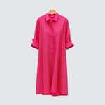 Šaty Petra jsou navrženy tak, aby ohromily svou jednoduchostí. Lesklá fuchsiová barva a jasný silueta dokonale vyvažují svěžest a eleganci. Ať už jdete na denní akci, večeři, nebo si jen chcete připadat sebevědomě a upraveně, Petra je jistou volbou, jak se odlišit bez slov. Uvolněný A-liniový střih lichotí každému typu postavy, zatímco ostrý límec a decentní lesk látky přinášejí právě tolik rafinovanosti. Šaty Petra dodávají každodenním okamžikům jemné drama, které je činí nezapomenutelnými – bez zbytečné námahy.