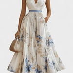 Šaty Elise v sobě spojují lehkost šifonu, ženský půvab květinového vzoru a moderní čistotu střihu. V-výstřih jemně zvýrazňuje dekolt, zatímco A-liniová silueta a nastavitelý pásek tvarují postavu s nenucenou elegancí. Plisování dodává šatům pohyb a svěžest — ideální volba pro dny, kdy chcete vypadat půvabně a cítit se přirozeně.