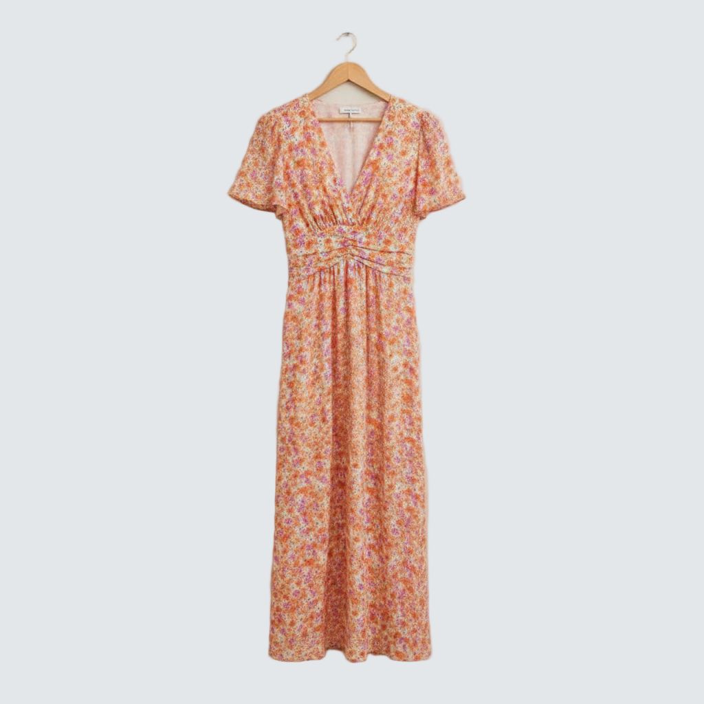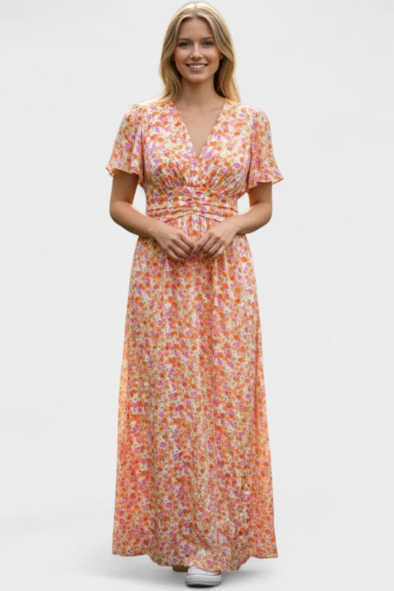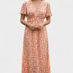 Marlene™ šaty okouzlují barevným květinovým vzorem, který okamžitě přináší radost a letní svěžest. Krátké rukávy, elegantní V-výstřih a jemné zvýraznění pasu pod linií dekoltu vytvářejí lichotivou siluetu, zatímco lehká látka se přirozeně přizpůsobuje postavě.