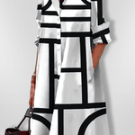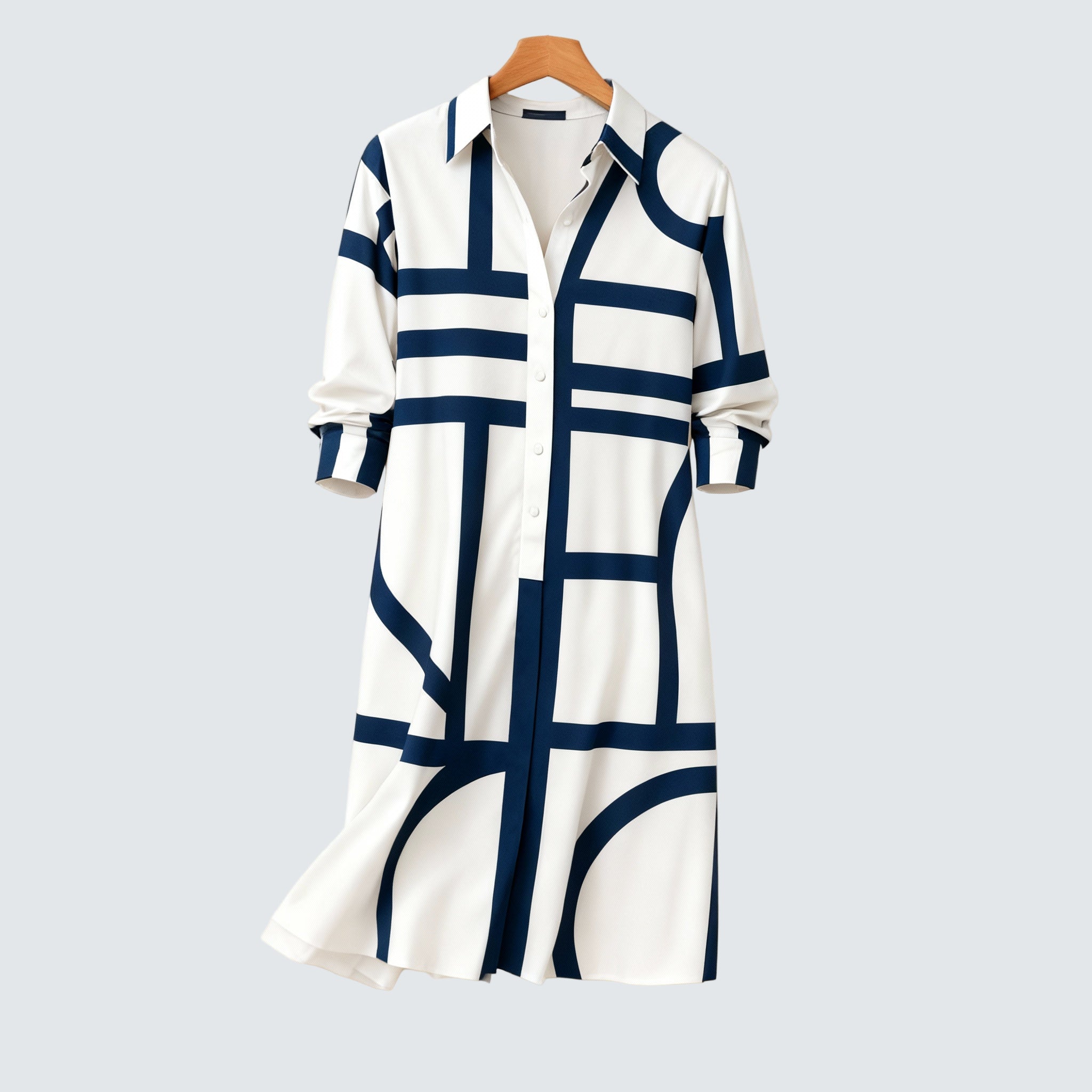 Šaty Séverine představují dokonalou rovnováhu mezi elegancí a pohodlím. Geometrický vzor přidává moderní nádech, zatímco klasický košilový střih s límcem a lehce rozšířenou sukní vytváří sofistikovaný, ale uvolněný vzhled. Lehká, prodyšná tkanina zajišťuje příjemné nošení od ranní schůzky až po večerní setkání – ideální volba pro každou příležitost.