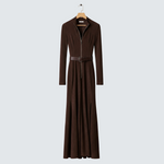 Kateřina | Dlouhé hnědé šaty s páskem a předním zipem