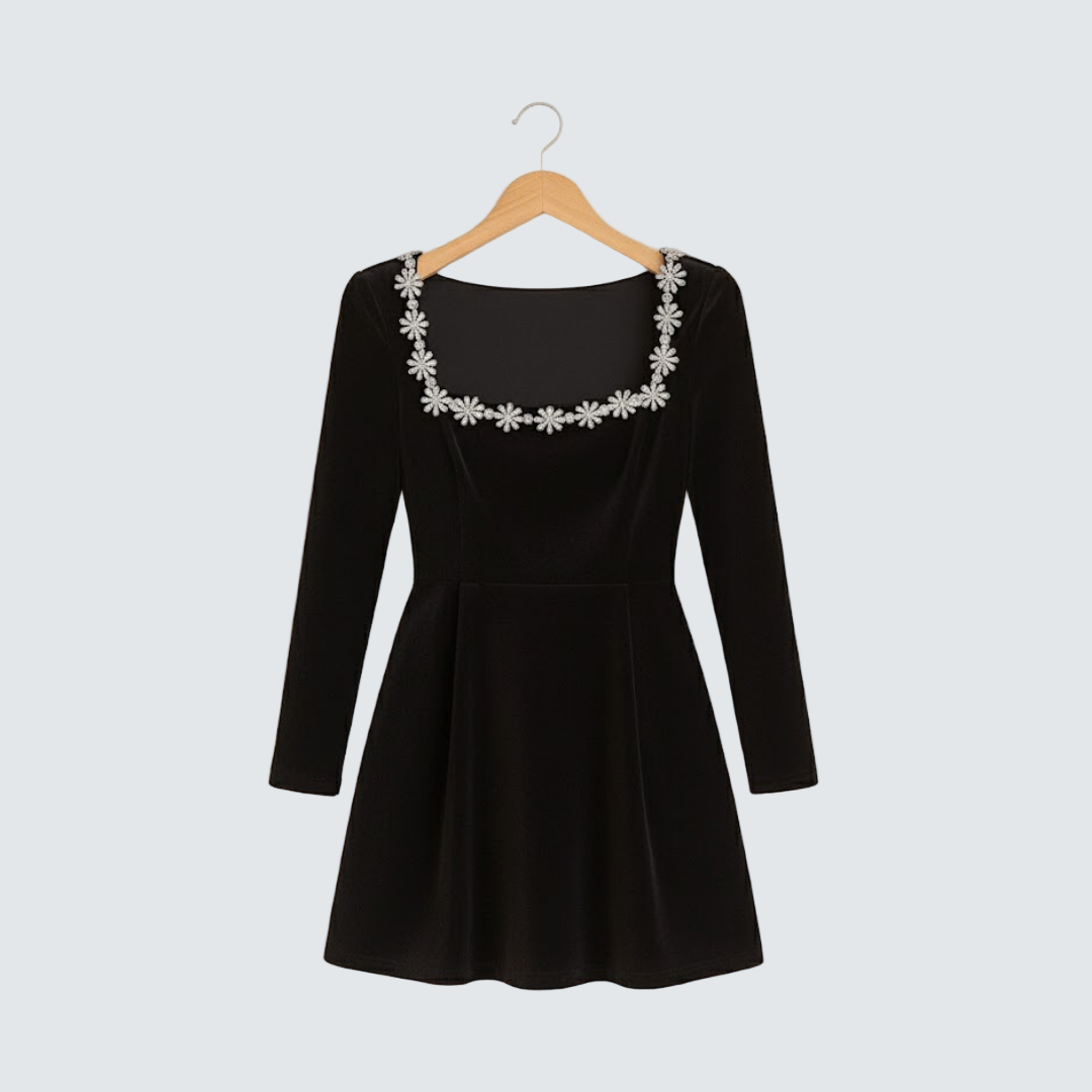 Alena | Sametové šaty s květinovým výstřihem