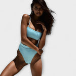 Set vyrobený z luxusního ribbového materiálu a vybavený nastavitelnými ramínky spojuje odvážný minimalismus s elegantním plážovým stylem. Udělejte dojem toto léto!