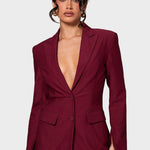 Valentina™ přináší moderní pojetí klasické elegance. Její hluboký bordeaux odstín, čisté linie a střih bez límce vytvářejí rafinovaný vzhled, který se dokonale hodí do práce, na každodenní nošení i slavnostní události. Univerzální kousek, který spojuje styl, pohodlí a ženskost v jednom.