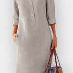 Šaty Élodie přinášejí minimalistickou krásu v nejčistší podobě. Vyrobené z měkké, prodyšné bavlny, poskytují celodenní pohodlí a vytvářejí přirozeně elegantní siluetu. Perfektní volba pro každou situaci – od pracovních setkání po večerní setkání s přáteli.