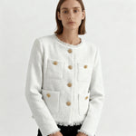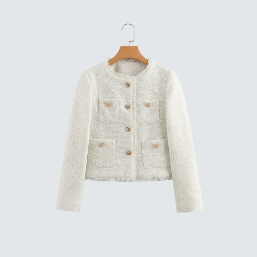 Objevte Clarette, elegantní sako inspirované pařížským stylem. S jemnou strukturou, luxusním vzhledem a zlatými knoflíky v duchu ikonické elegance přináší Clarette dokonalou rovnováhu mezi sofistikovaností a praktičností. Ideální pro moderní ženu, která si cení kvality, stylu a nadčasovosti – ať už v práci, nebo při večerní příležitosti.