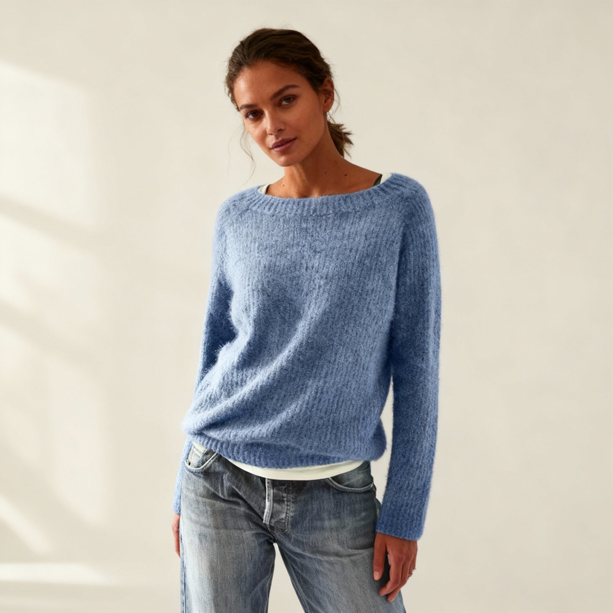 Jemný úplet a hladké lemy spojují pohodlí s elegancí.