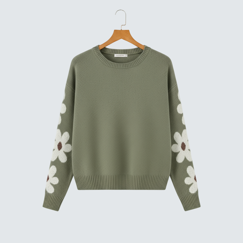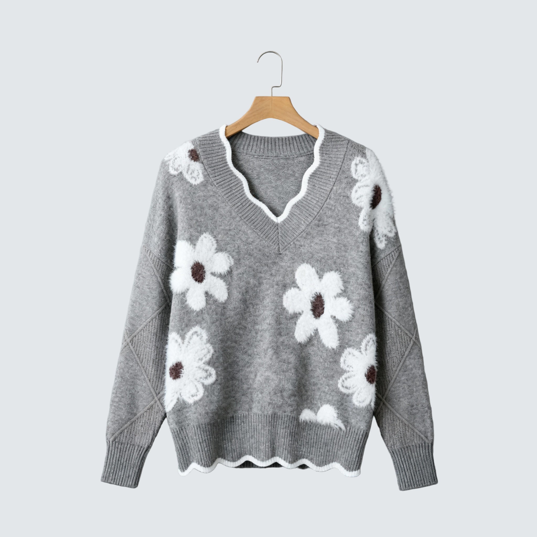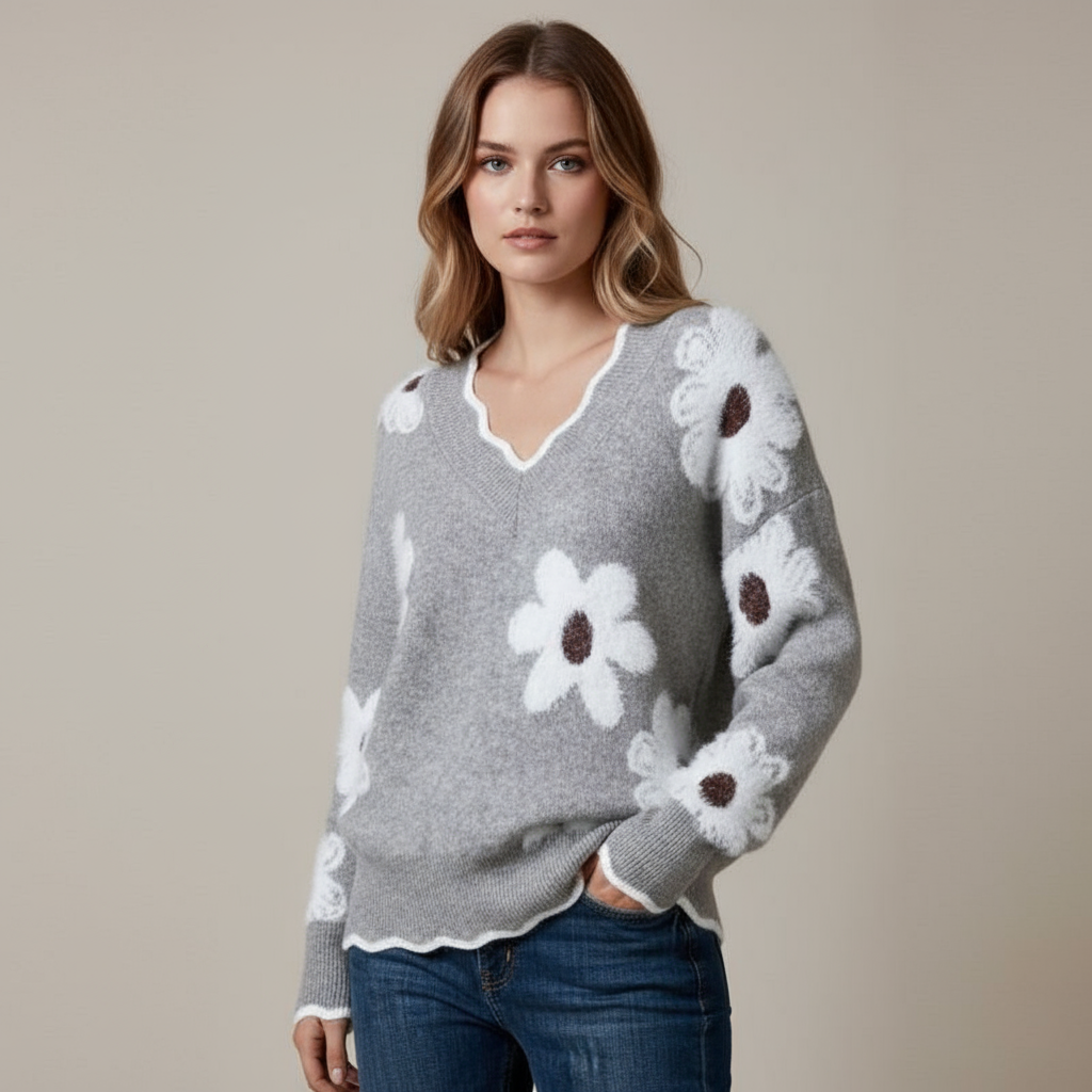 Karin | Elegantní květovaný svetr s výstřihem do V