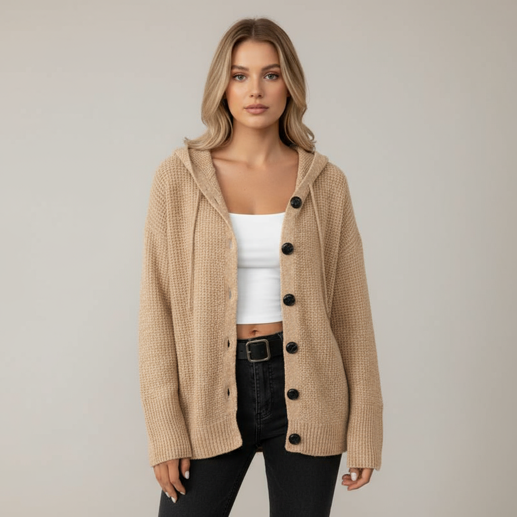 Veronika | Stylový pletený kardigan s kapucí a knoflíky