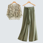 Claribel™ set kombinuje top s jemně texturovaným V-výstřihem a kalhoty s širokými nohavicemi a nastavitelným pasem, čímž vytváří pohodlnou a lichotivou siluetu. Lehká a prodyšná tkanina zaručuje celodenní komfort, zatímco minimalistický design umožňuje snadné stylingové kombinace pro každou příležitost – od běžných dnů až po elegantní večery.