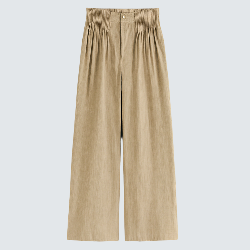 Kalhoty Ilyana jsou navrženy pro ženy, které chtějí vypadat upraveně a cítit se pohodlně zároveň. Jejich splývavý střih, vysoký pas a vzdušný materiál vytvářejí elegantní siluetu, která se snadno přizpůsobí pracovnímu dni i volnějším chvílím. Minimalistický design s nádechem sofistikovanosti z nich dělá nadčasový kousek vašeho šatníku.